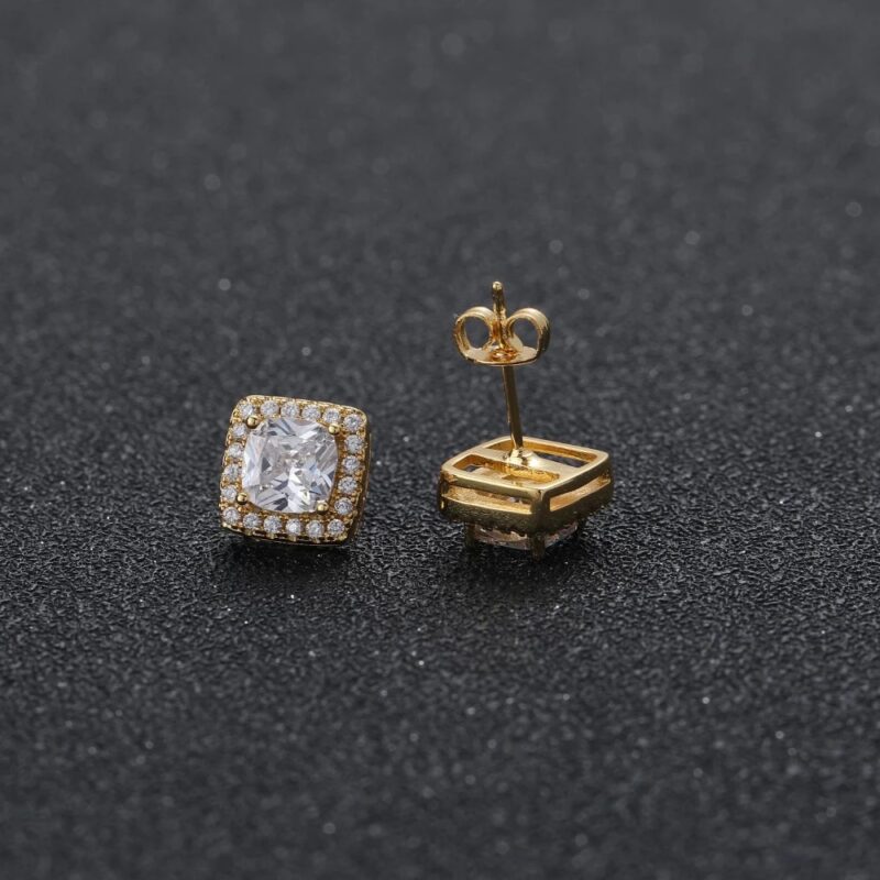 Elevate your everyday style with these exquisite AAA cubic zirconia baguette square stud earrings, beautifully crafted from environmental brass and finished with a radiant 18K gold plating. Each stud showcases precision-cut 3A CZ stones that deliver diamond-like brilliance, making these luxury gold studs the perfect blend of sophistication and shine. The sleek baguette-cut design reflects light from every angle, creating a stunning sparkle that transitions effortlessly from casual chic to formal elegance.